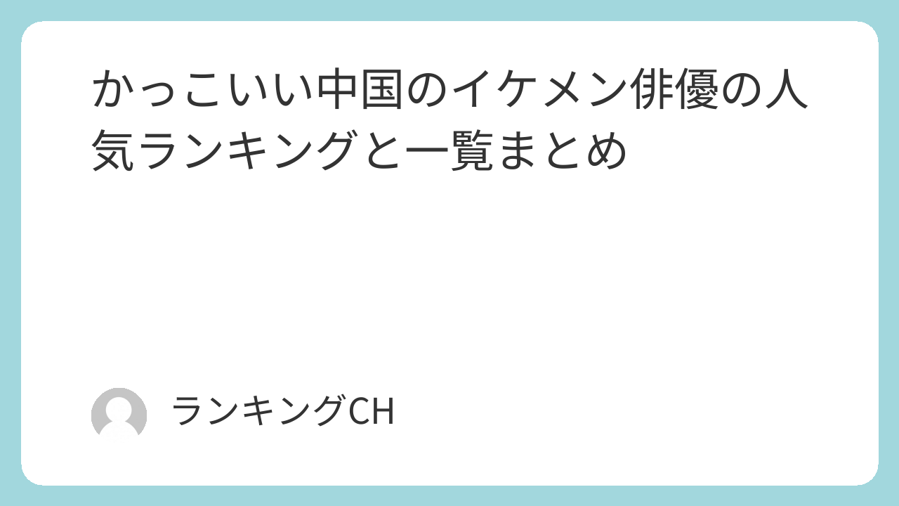 中国イケメン俳優人気ランキングTOP10