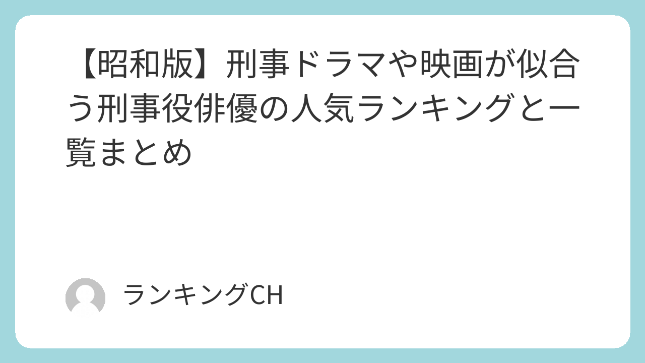 昭和の刑事役が似合う俳優人気ランキングTOP10